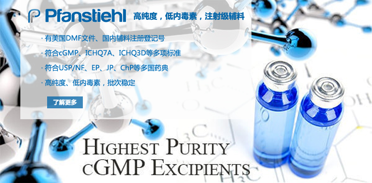 “熱烈祝賀Pfanstiehl的注射級甘氨酸Glycine(G-140)喜獲CDE登記號F20250000403, 這是Pfanstiehl產品獲得的第18個CDE登記號!”甘氨酸在醫藥輔料制劑中應用廣泛,, 可作為緩沖劑,增溶劑,穩定劑等,具有諸多優勢。Pfanstiehl秉承一貫高品質理念,為滿足全球生物制藥行業對于高品質甘氨酸的需求,隆重推出的注射級甘氨酸Glycine (G-140), 具有超高純度,超低內毒素,超低金屬殘留的特點,單獨檢測29種金屬離子,并且新增DNA,RNA,DNA酶,RNA酶和脂肪酶,亞硝酸鹽等多項質量指標的檢測,符合多國藥典規定(USP, EP, BP, JPE, ChP),可用于生物治療性藥物和疫苗的生產。產品信息:· 產品名稱:Glycine, High Purity, Low Endotoxin, Low Metals, USP, EP, BP, JPE, ChP (G-140)· 中文名稱:甘氨酸· 分子式:C2H5NO2· 分子量:75.07 g / mol· CAS號:56-40-6· 產品貨號:G-140產品特點: · 超高純度,超低內毒素,超低微生物含量,超低金屬雜質殘留· 質量指標新增DNA,RNA,DNA酶,RNA酶,脂肪酶和亞硝酸鹽檢測· 符合多國藥典:USP, EP, BP, JPE, ChP· 符合ICH Q3D標準· 符合GMP標準· 已獲DMF和CDE登記號 產品應用:· 緩沖劑· 穩定劑· 增溶劑如果您對Pfanstiehl注射級別Glycine G-140感興趣,歡迎聯系Pfanstiehl 中國區代理商北京西美杰科技有限公司獲得如下詳細的產品概況說明文件和測試樣品。Pfanstiehl Inc.最新產品系列如下,歡迎聯系北京西美杰科技有限公司獲取100g裝免費樣品。北京西美杰科技有限公司為Pfanstiehl中國代理,為客戶提供完善的技術支持與售后服務。歡迎撥打西美杰客服電話400-050-4006或者登陸網站www_xmjsci_com.98ba.cn了解更多信息。 更多>